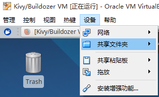 首先我们先在该系统中添加一个共享文件夹,这样可以和windows共享文件,在VB的设备->共享文件夹选项中有配置: