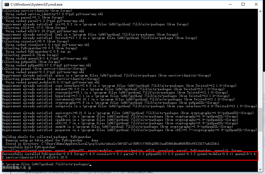 以上这篇python安装Scrapy图文教程就是小编分享给大家的全部内容了,希望能给大家一个参考,也希望大家多多支持脚本之家。