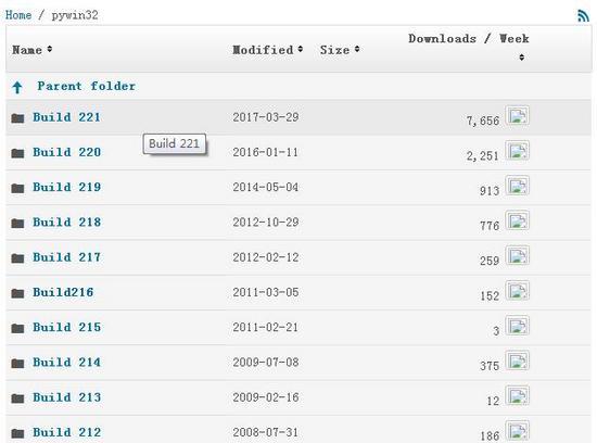①.访问pywin32下载地址:https://sourceforge.net/projects/pywin32/files/pywin32/