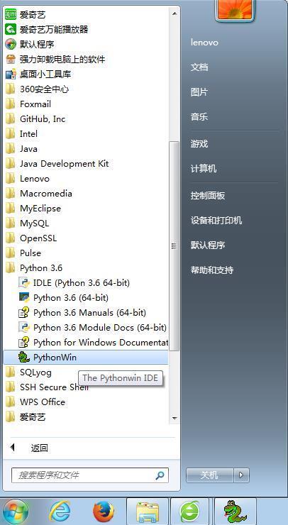 成功的话,在开始菜单中的python3.6目录下会有PythonWin这项。