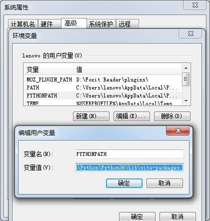 注意:PYTHONPATH是用户变量。如果没有这项可以新建。