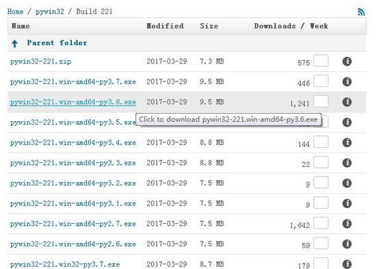 选择pywin32-221.win-amd64-py3.6.exe文件下载到本地,大小是9.5M,不是很大,下载很快的。