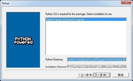 所以系统会自动根据我安装的Python安装目录将pywin32安装在C:\Users\lenovo\AppData\Local\Programs\Python\Python36\Lib\site-packages\目录中。