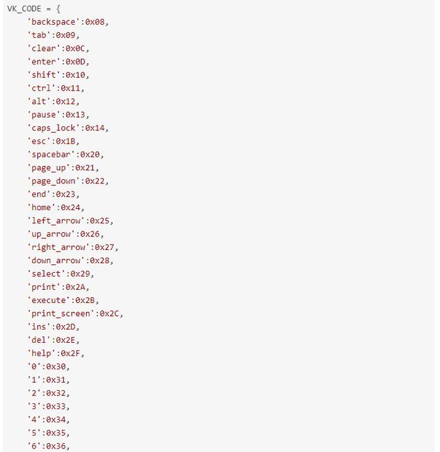 键盘上符号对应的VK_CODE的具体值。 参考 发一些上来大家看看就好。