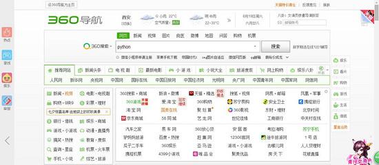 当运行test.py时,会模拟在360浏览器的搜索框自动输入python,同时点击搜索按钮开始搜索。