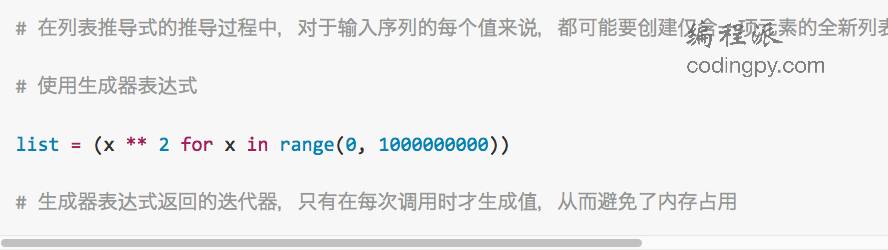 数据多时,列表推导式可能会消耗大量内存,此时建议使用生成器表达式