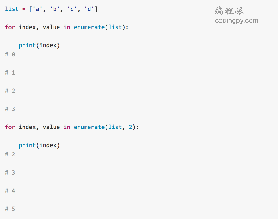 enumerate可以接受第二个参数,作为迭代时加在index上的数值