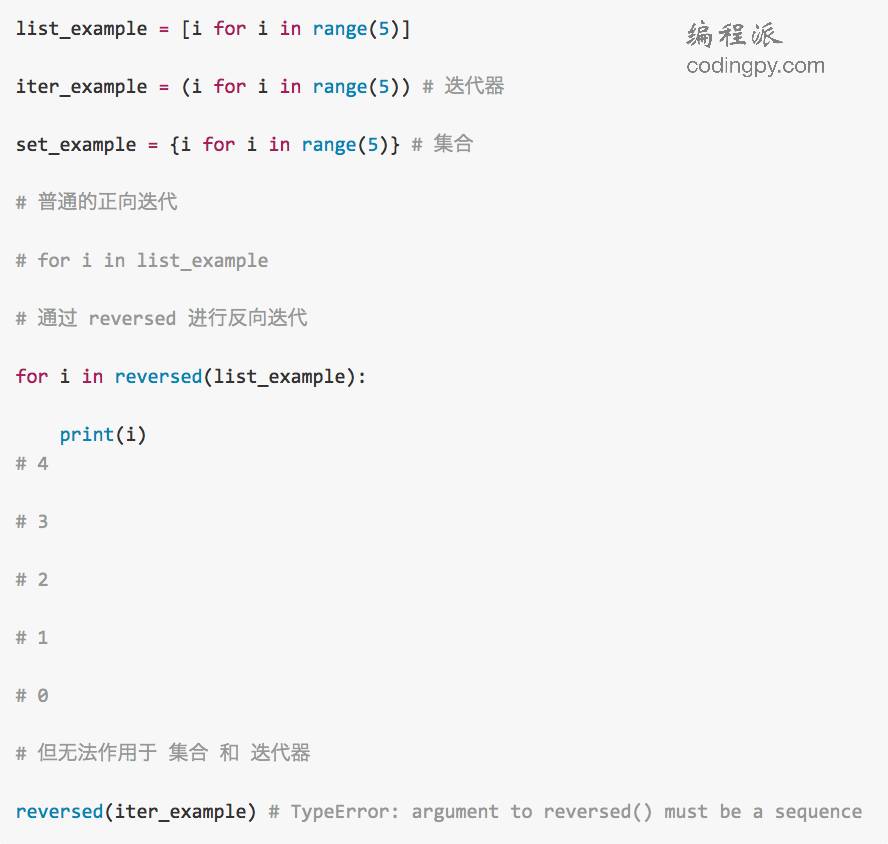 对于普通的序列(列表),我们可以通过内置的reversed()函数进行反向迭代: