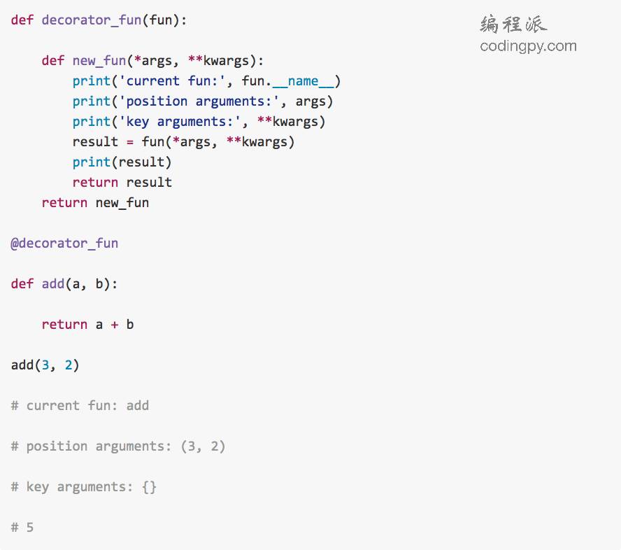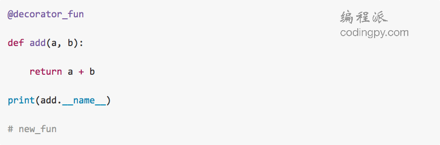 也就是说原函数已经被装饰器里的new_fun函数替代掉了。调用经过装饰的函数,相当于调用一个新函数。查看原函数的参数、注释、甚至函数名的时候,只能看到装饰器的相关信息。为了解决这个问题,我们可以使用