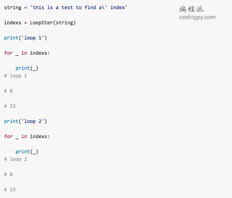 需要注意的是,普通的迭代器只能迭代一轮,一轮之后重复调用是无效的。解决这种问题的方法是,你可以定义一个可迭代的容器类: