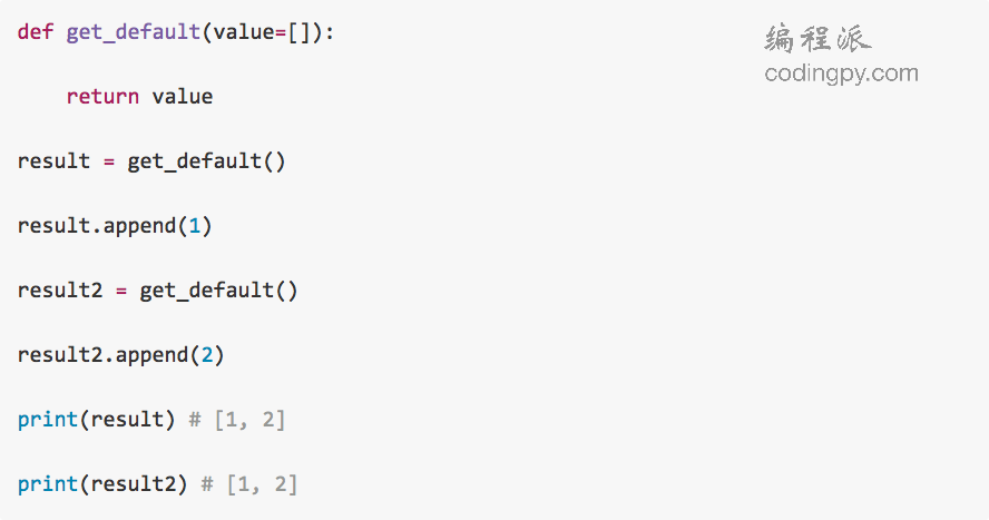 比如[]或者{}),则如果之后在调用函数的时候给参数赋予了其他参数,则以后再调用这个函数的时候,之前定义的默认值将会改变,成为上一次调用时赋予的值: