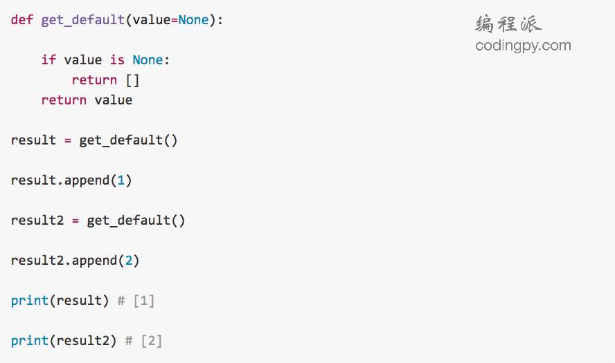 因此,更推荐使用None作为默认参数,在函数内进行判断之后赋值: