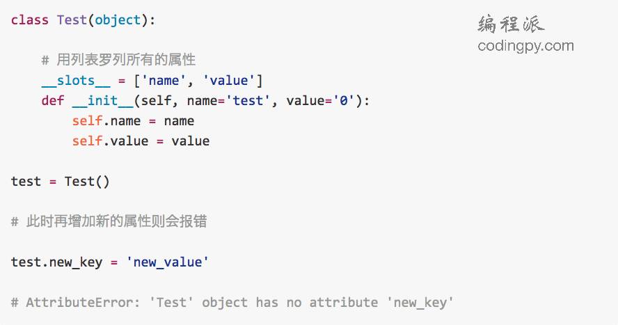 然而这个字典浪费了多余的空间 -— 很多时候我们不会创建那么多的属性。因此通过__slots__可以告诉 Python