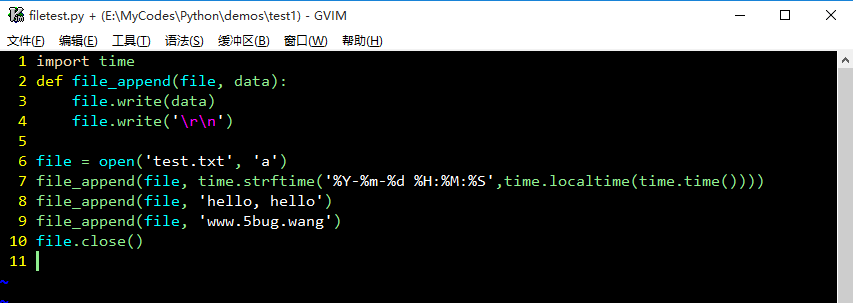 nmap <F1> :w!<CR>:!python %<CR> 设置运行的快捷键