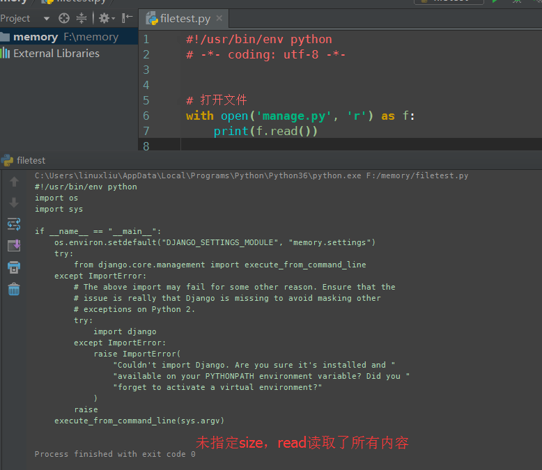 1.从文件读取指定的字节数,size如果未给定或为负则读取所有。