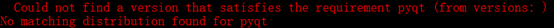 Could not find a version that satisfies the requirement pyqt (from versions: ) No matching distribution found for pyqt