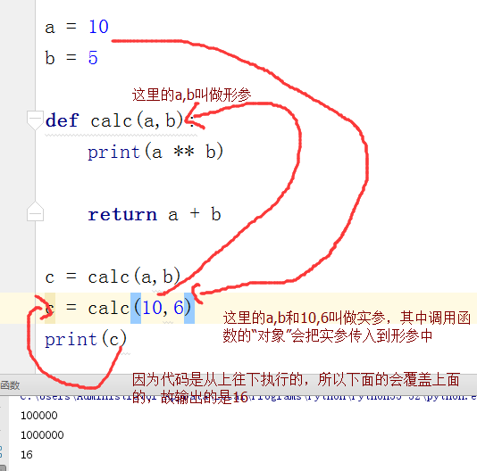 a = 10 b = 5 def calc(a,b): print(a ** b) return a + b c = calc(a,b) c = calc(10,6) print(c)