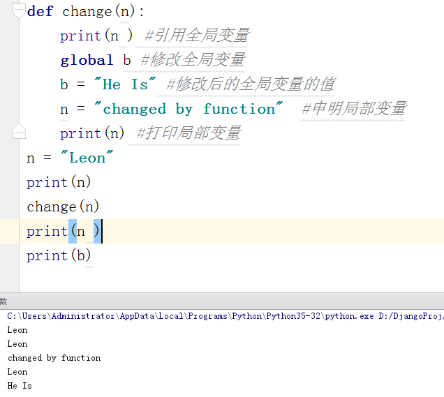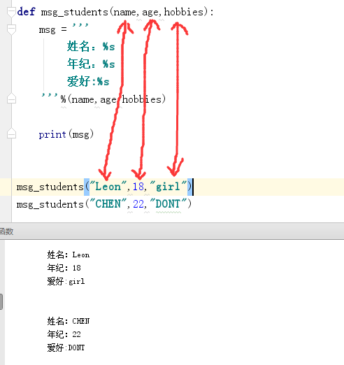 通过上面的代码我们发现,我们只需要将报警的这一套流程放到一个公共的地方,等下面触发报警的条件的时候调用报警的函数,这样我们就可以省去当每次触发报警的时候我们自己在写报警的步骤了。但是函数是怎么定义呢?又有什么语法和定义呢?请看下面的一段代码,其中代码输出的是“Leon Have A Dream”