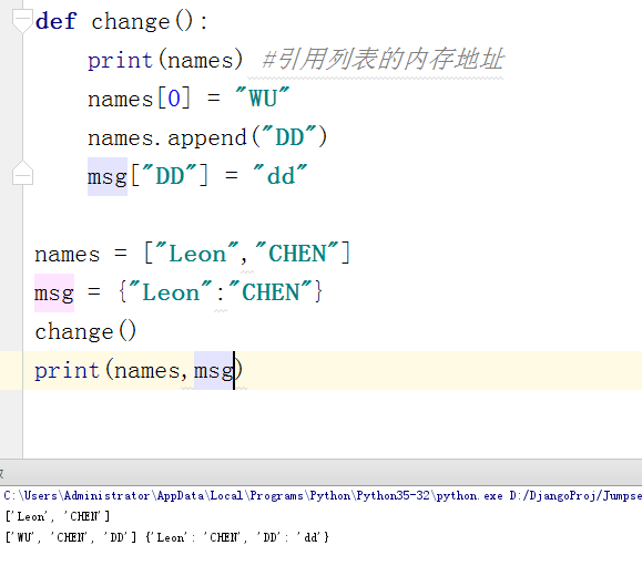 为什么列表和字典等会被添加和修改呢,原来函数内部知识引用了字典和列表的内存地址,而内存地址无法修改(可以重新开辟一块内存地址),而每个字典和列表中的每一个值都有对应的内存地址,但是记住我们函数是引用的列表或者字典本身的内存地址,所以这样打印到出来的也就会跟着改变了。