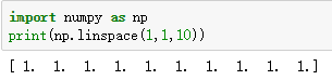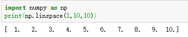 import numpy as np print(np.linspace(1,10,10,endpoint=False))