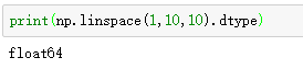 还可以看一下linspace创建的数组的元素的数据格式,当然是浮点型。