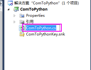 重命名cs文件:ComToPython.cs,可自定义。 弹窗选择【是】