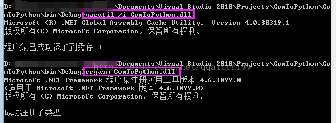 执行:gacutil /i ComToPython.dll 添加dll至全局缓存