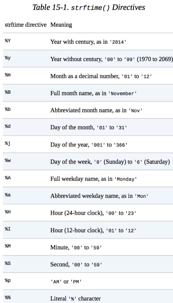 具体使用参考下表(摘自 Automate the Boring Stuff with Python)