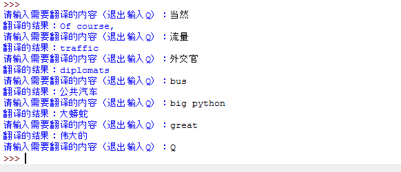 content = input('请输入需要翻译的内容(退出输入Q):')
