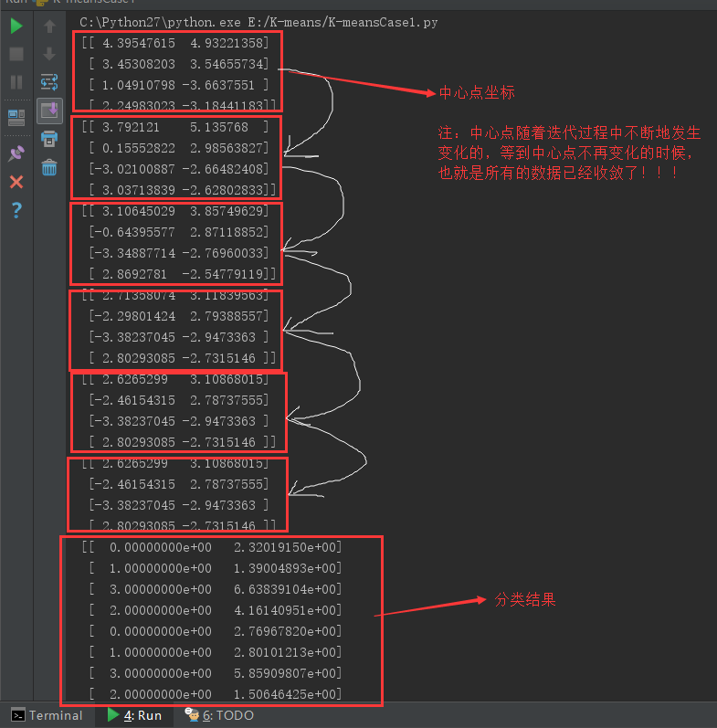 if clusterAssment[i,0] != minIndex: clusterChanged = True; # 如果分配发生变化,则需要继续迭代