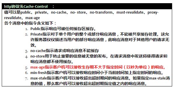 还是上面那个请求,web服务器返回的Cache-Control头的值为max-age=300,即5分钟(和上面的Expires时间一致,这个不是必须的)。