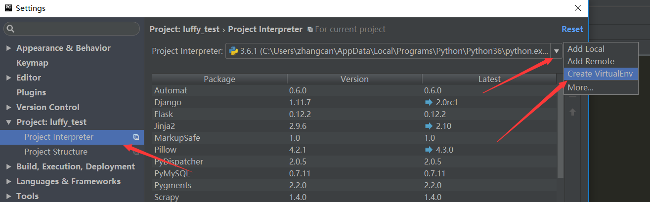 确认后,就已经创建了一个虚拟环境,然后应用到我们的项目中