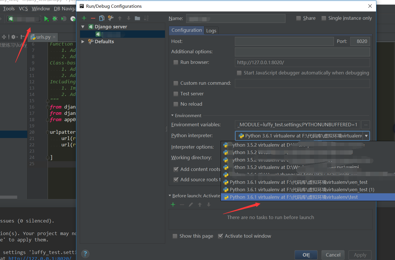 在项目配置那里,把解释器改成我们新建的那个虚拟环境就好了