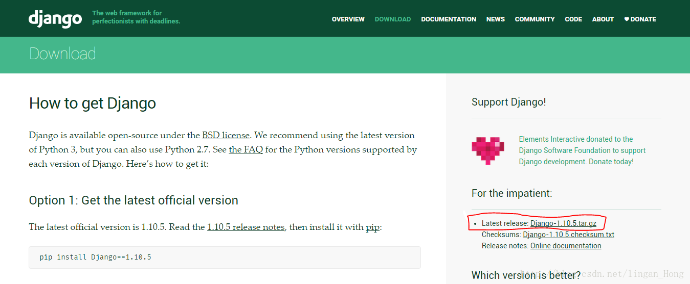 现在为止官方上正式版是Django-1.10.5。它后期可能还会不断更新,等你再次打开时候,可能不是我的这个版本了。