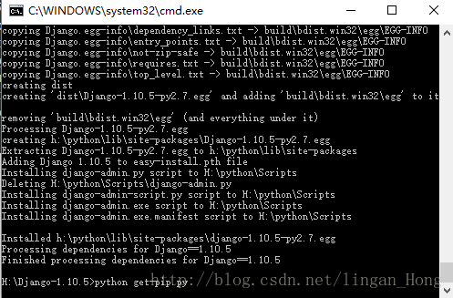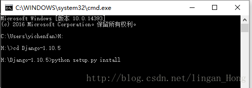 进入H盘下,再进入你刚刚下载的安装包的django目录下。
