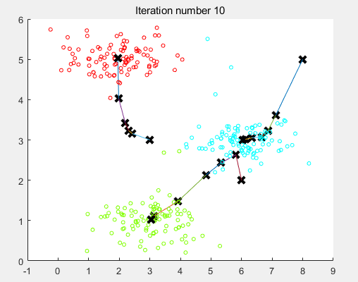 [centroids, idx] = runkMeans(X, initial_centroids, max_iters);