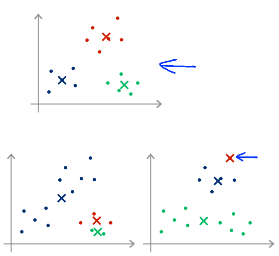 随机取簇中心若是不幸,会出现局部最优的情况;想要打破这种情况,需要多次取值计算来解决这种情况。