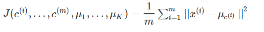 J = zeros(100,1); M = size(X,1); min = inf; for i = 1:100 %随机取k个样本点作为簇中心 randidx = randperm(M); initial_centroids = X(randidx(1:K),:); %将所得的中心点进行训练 [centroids0, idx] = runkMeans(X, initial_centroids,10); for k = 1:M J(i) = J(i) + sum((X(k,:) - centroids0(idx(M),:)).^2); end %取最小代价为样本中心点 if(min > J(i)) centroids =centroids0; end end