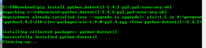 5.解决ImportError: matplotlib requires dateutil问题,方法和第4步一样,下载python_dateutil‑2.4.2‑py2.py3‑none‑any.whl,然后pip install就可以解决该问题了。操作如下: