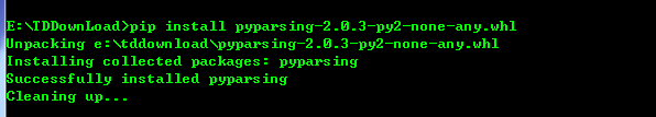 6.解决ImportError: matplotlib requires pyparsing问题,还如同之前一样,下载pyparsing‑2.0.3‑py2‑none‑any.whl(选择对应的版本,这里有2和3的区别)然后利用pip install安装好就可以了。操作如下: