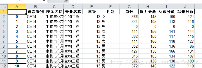 这段时间看了数据分析方面的内容,对Python中的numpy和pandas有了最基础的了解。我知道如果我不用这些技能做些什么的话,很快我就会忘记。想起之前群里发过一个学校的四六级成绩表,正好可以用来熟悉一下pandas中的一些用法。