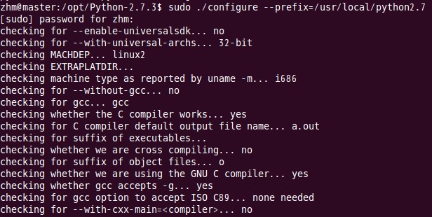 通过添加--prefix用于指定python的安装路径于/usr/local/python2.7,配置完成后,我们就可以执行make操作了.