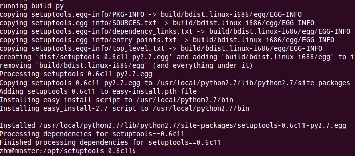 出现以上图就表明setuptools工具已经安装成功。并且可以看到此setuptools安装的路径在/usr/local/python/python2.7目录下。