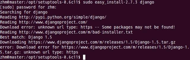 出现以上问题的解决办法只有一个,即在安装python2.7.3之前未安装libssl-dev库,因此需要安装此库,然后再重新按上述方式安装一遍python和setuptools,最后再用easy_install安装django,此时才能成功安装。安装libssl-dev库命令如下: