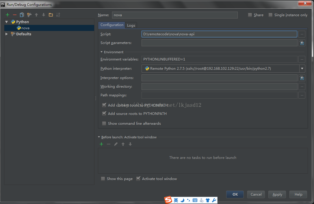 首先加载远程python解释器,比如你的openstack安装在虚拟机上,则就是你虚拟机上的python,这里我们以远程调试nova为例。