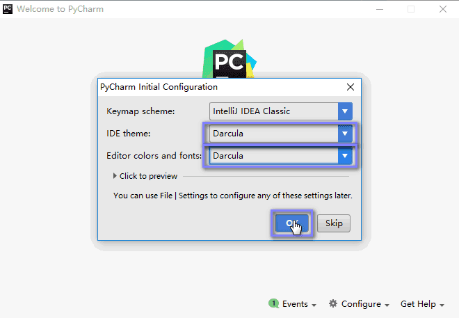 14、选择IDE主题与编辑区主题,建议Darcula主题(温馨提示:黑色更有利于保护眼睛噢!!!)。