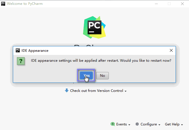 15、由于我们更改主题,故会提示重启IDE,选择Yes。