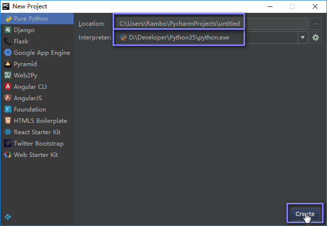 17、自定义项目存储路径,IDE默认会关联Python解释器。