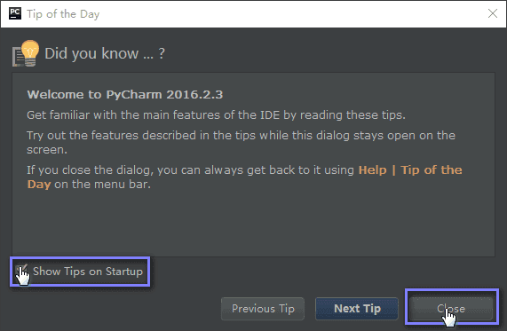 18、IDE提供的提示,我选择在启动时不显示提示。