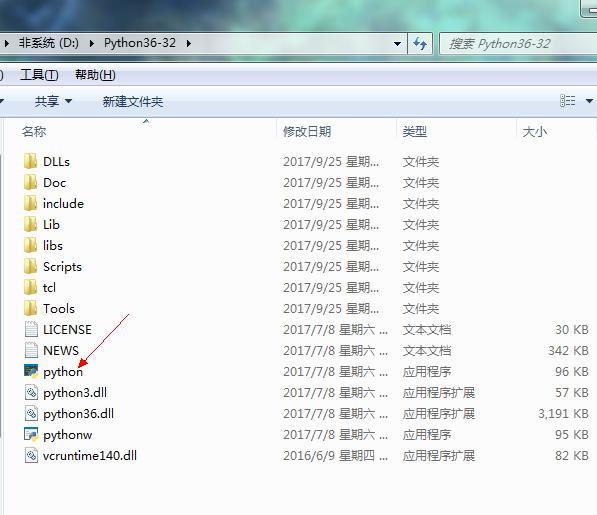 首先你需要进入安装Python相应版本所在的文件夹。以我的Python版本为例,这是我的Python2.7版本对应的解释器名称: